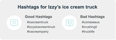 Hashtags can help improve the chances of potential followers finding and engaging with your content. Posts that contain a hashtag get more engagement than those without hashtags. Consider hashtags related to your business that are easy to use, catchy and popular for your posts. You can create a branded hashtag for followers to use when posting about your business.