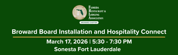 Join the FRLA Broward Chapter on March 17th for the 2026 Board Installation and Hospitality Connect. Network with your industry colleagues and get to know your 2026 Chapter Board as we discuss the exciting year ahead. Broward County Commissioner Steven Glassman will present the Board installation. You don’t want to miss it! Register Today!