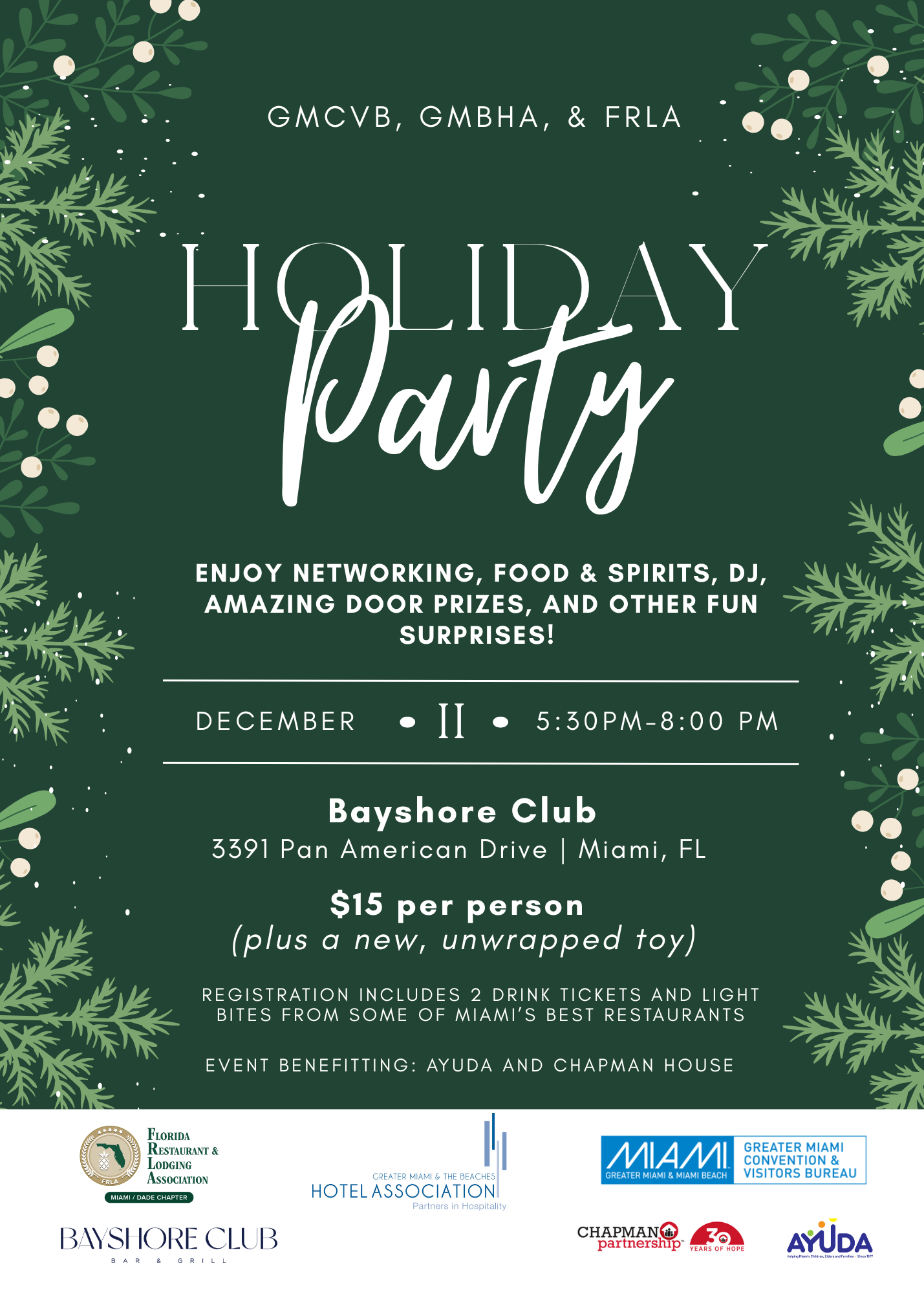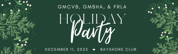Please join us for the 2025 Annual GMCVB, GMBHA & FRLA Holiday Reception & Toy Drive on December 11th! Admission includes two complimentary drink tickets & light bites. Enjoy a live DJ, fantastic networking, amazing door prizes, and other fun surprises. The cost to attend is $15 per person, plus one new, unwrapped toy for children to benefit the toy drive.