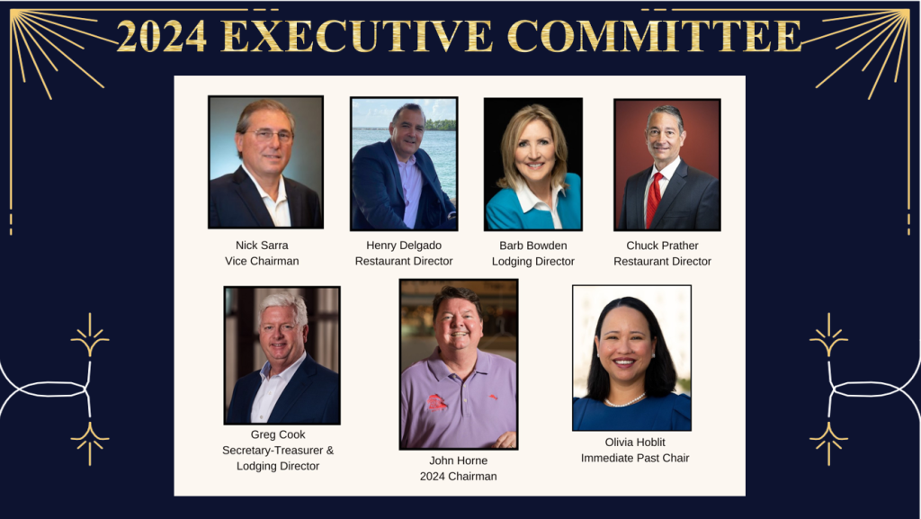 “Despite the ever-evolving challenges we encounter each year, the enduring resilience and significance of our industry in strengthening our communities and driving Florida’s economic prosperity remains unwavering,” said Carol Dover, President & CEO of the Florida Restaurant and Lodging Association (FRLA). “We remain committed to advancing our mission to protect, educate, and promote Florida’s vibrant hospitality industry and to keep the economic engine of our state running well. Our distinguished 2024 Executive Committee brings a wealth of knowledge, talent, passion, and skills to help propel FRLA and the industry forward, and together we look forward to supporting our members and actively contributing to the thriving landscape of the industry.”